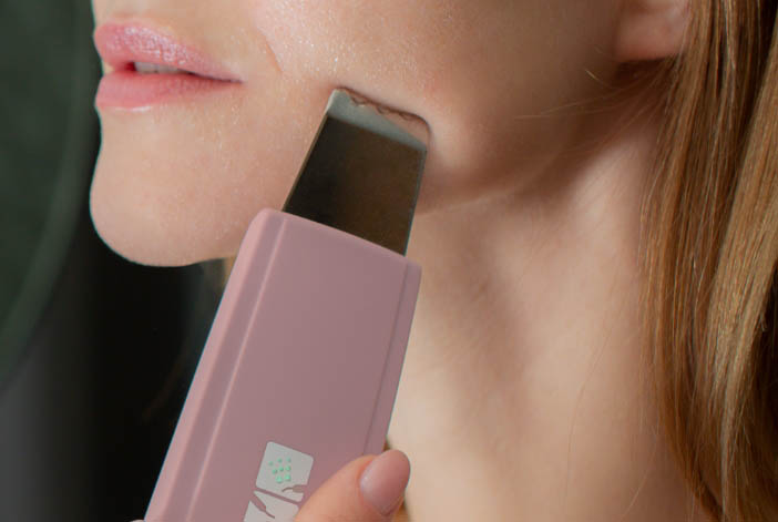 Das Gerät zur Hautpflege verwendet Ultraschall- und Iontophorese-Technologie, dank der es möglich ist, die Epidermis zu peelen, die Hautzellen mit Nährstoffen zu versorgen, wodurch sie elastischer und fester wird.